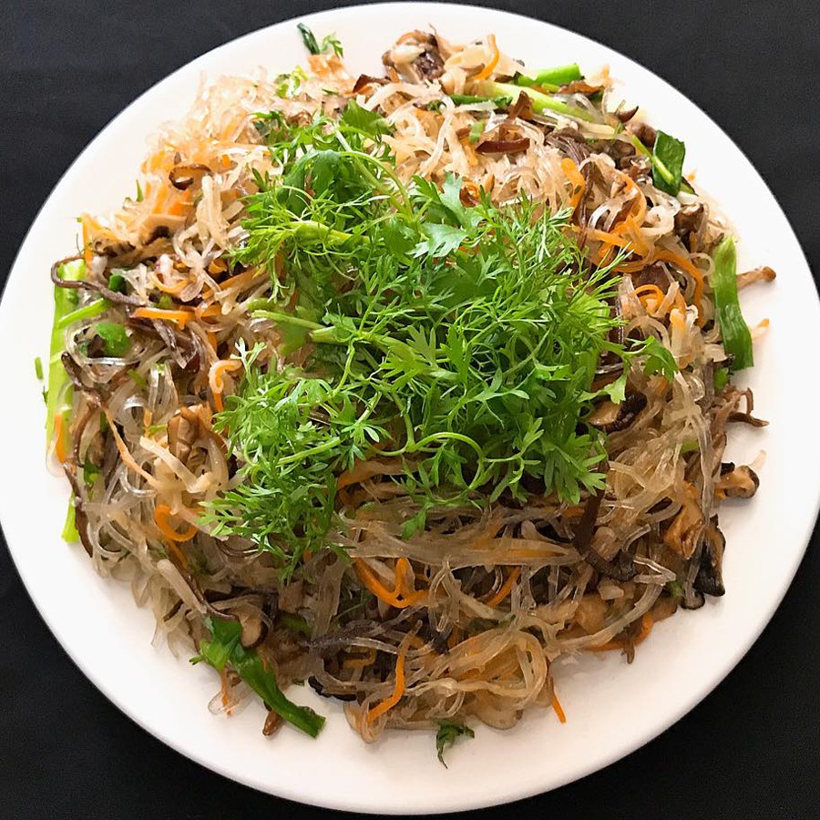 2. Dùng để xào: – Ngâm Miến trong nước ấn 60 độ C (bằng cách pha 2 phần nước nóng, 1 phần nước lạnh) khoảng 10 phút vớt ra. – Xào tôm, thịt, rau sẵn… Xong cho Miến vào xào chung.
