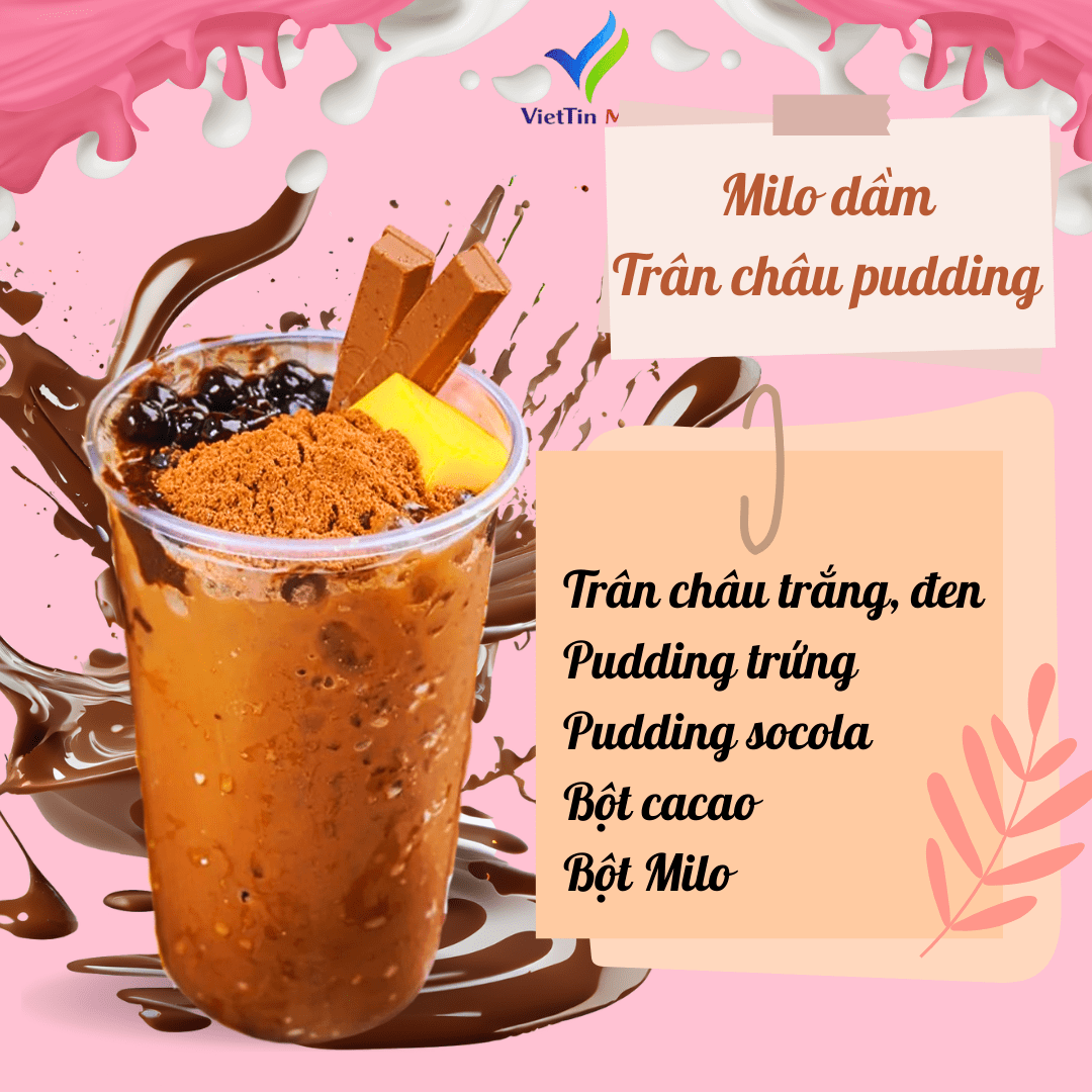 Set Nguyên liệu Milo Dầm tiện lợi, Vị béo ngậy của sữa tươi, đăng đắng của milo, dai dai của trân châu cùng pudding thơm ngon hòa quyện với nhau trong một ly milo dầm trân châu pudding thì chẳng có điều gì phải chê nữa.