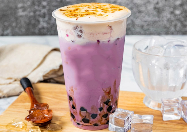Trà sữa khoai môn mát lạnh với màu sắc bắt mắt. Trà sữa thì béo, thơm phức mùi trà ô long kết hợp với sốt khoai môn ngọt ngọt hấp dẫn vô cùng. Hút 1 ngụm trà sữa cùng sốt khoai môn tươi, múc cùng 1 muỗng thạch giòn giòn dai dai chắc chắn sẽ khiến bạn thích mê đấy nhé!