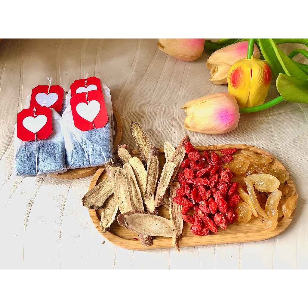 ➖ Thành Phần: 4 gói trà túi lọc, cam thảo, xí muội thái lan, táo tàu, xí muội trần bì, nho vàng ấn độ, kỷ tử