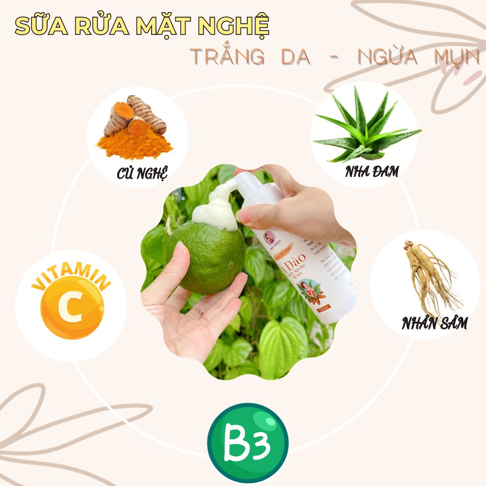 Tên sản phẩm: Sữa rửa mặt nghệ Ả Đào Mộc Nhan trắng da, ngừa mụn, mờ thâm dùng cho da thường, da nhạy cảm, da hỗn hợp