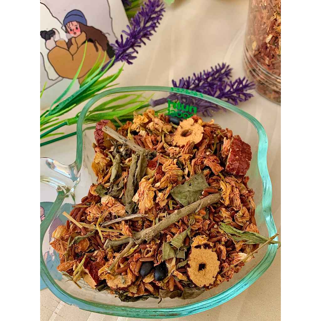 - Khách hàng có thể nấu hoặc hảm bằng nước sôi. Tỉ lệ 1 lít nước dùng 4 muổng trà.